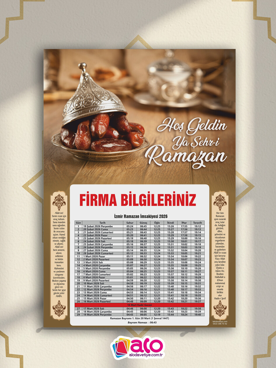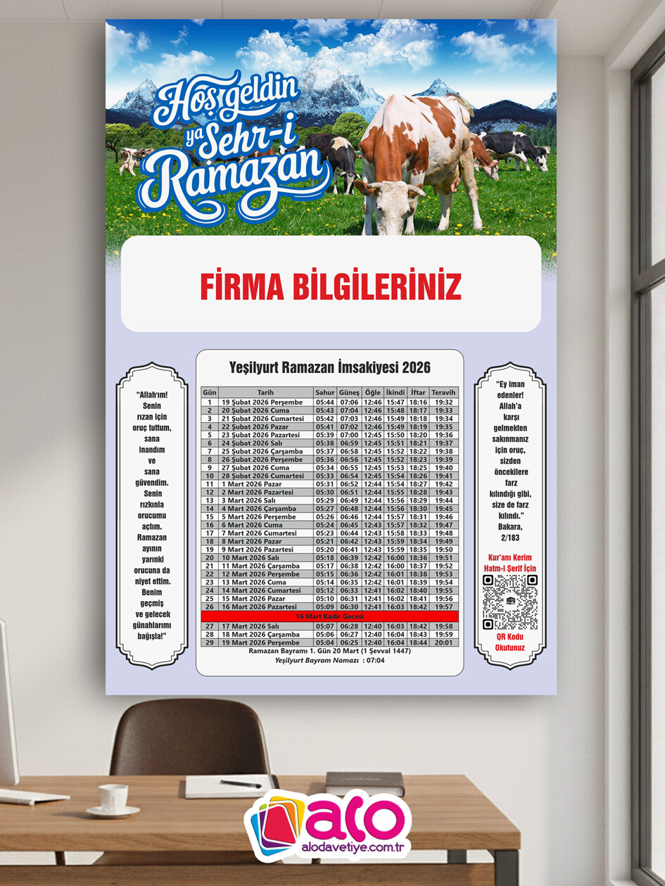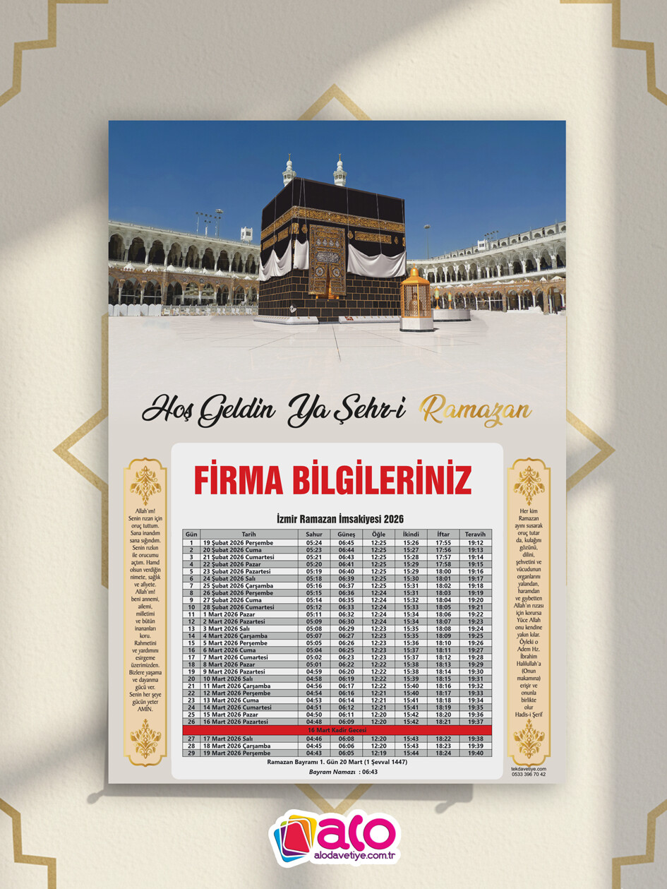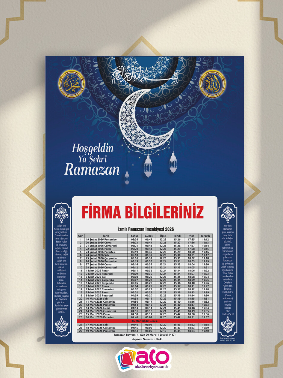 Özenle tasarladığımız, göz yormayan ve her detayını kolayca takip edebileceğiniz 2026 İmsakiye tasarımlarımızla mutfaklarınıza, ofislerinize konuk oluyoruz.