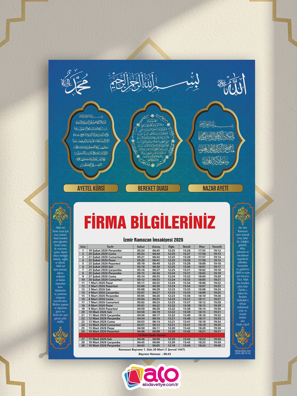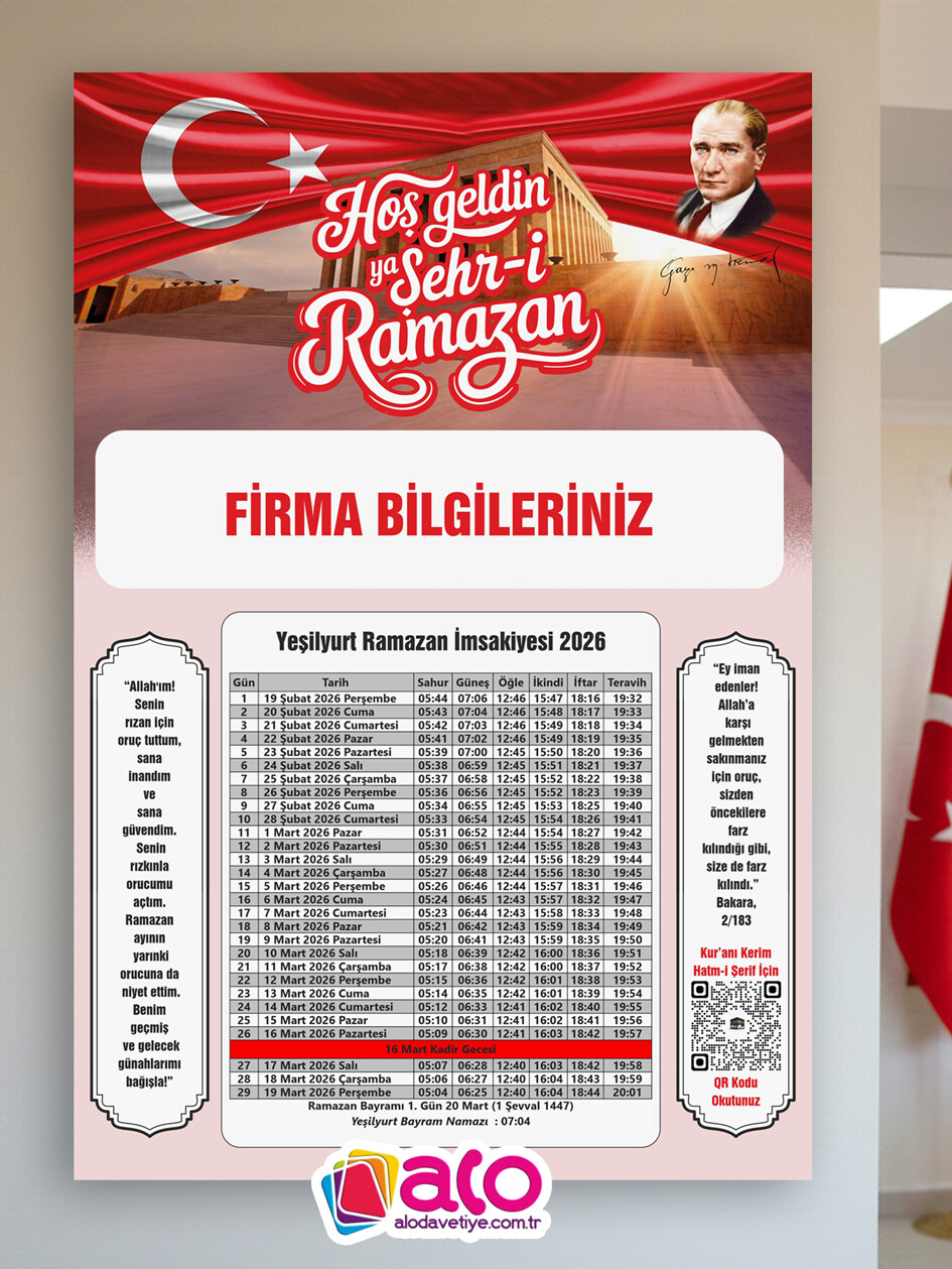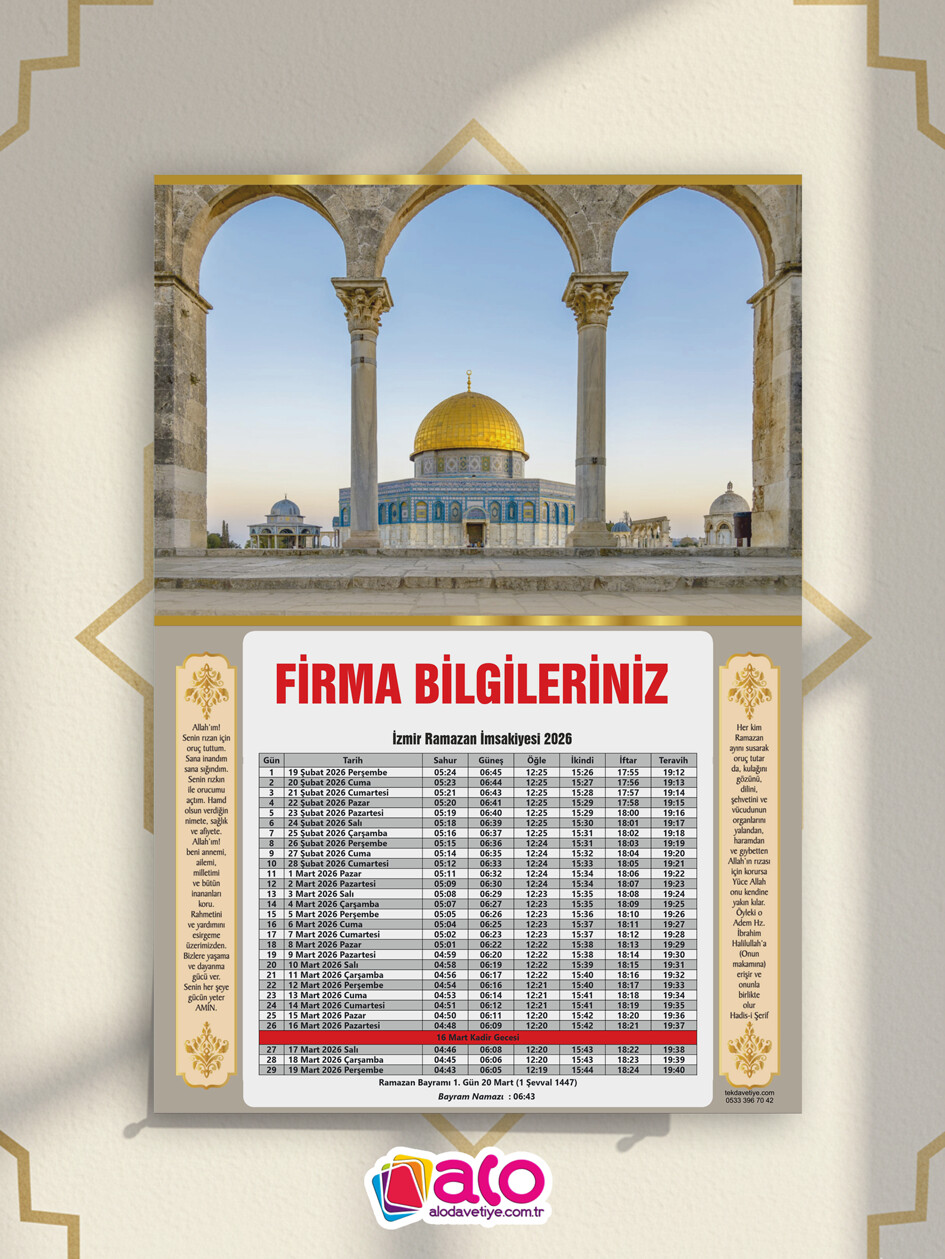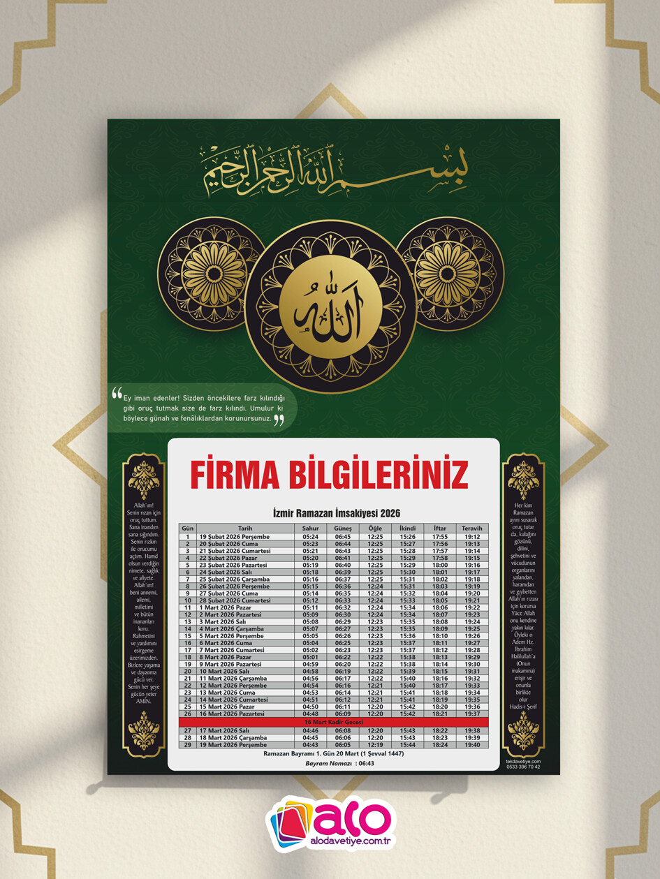 Özenle tasarladığımız, göz yormayan ve her detayını kolayca takip edebileceğiniz 2026 İmsakiye tasarımlarımızla mutfaklarınıza, ofislerinize konuk oluyoruz.
