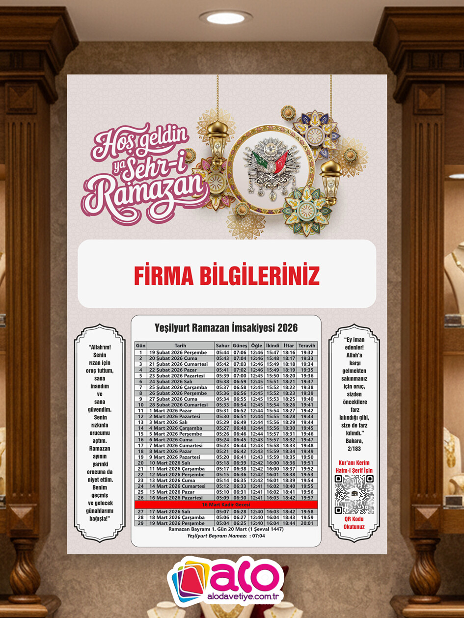 2026 Özel Tasarım Ramazan İmsakiye 1000 Adet